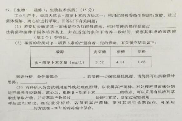 2017广州高三毕业班综合测试一理综试题及答案(15)