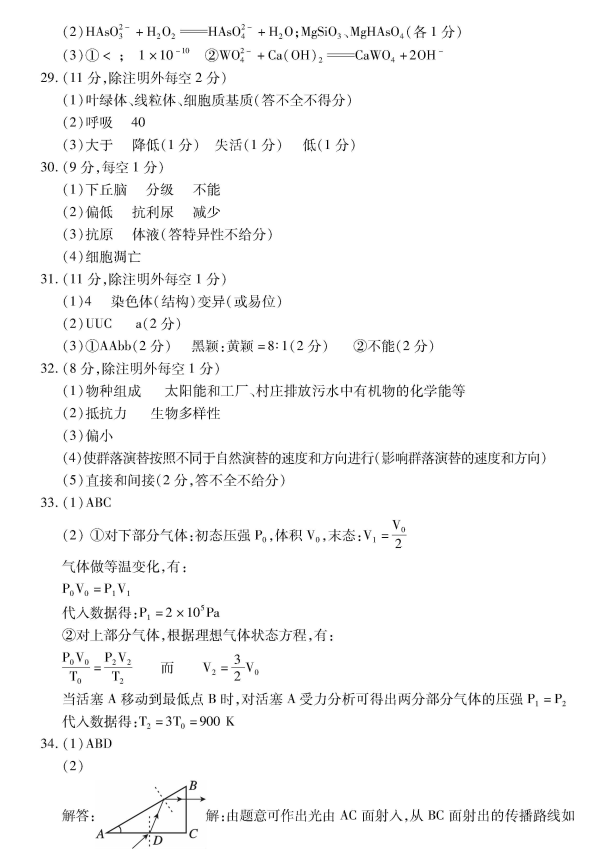 2017咸阳二模理综 咸阳高三模拟二理综试题及答案(3)
