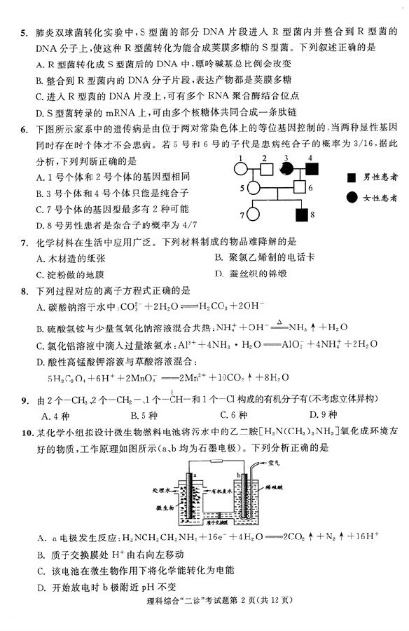 2017年成都二诊理综试题及答案(2)