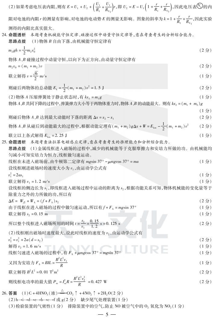 2017皖北协作区联考理综答案 皖北第19届高三联考理科综合答案(5)