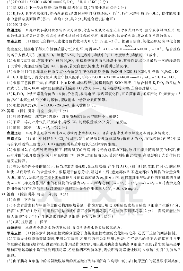 2017皖北协作区联考理综答案 皖北第19届高三联考理科综合答案(7)