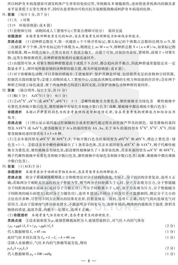2017皖北协作区联考理综答案 皖北第19届高三联考理科综合答案(8)