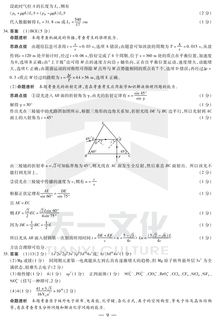 2017皖北协作区联考理综答案 皖北第19届高三联考理科综合答案(9)