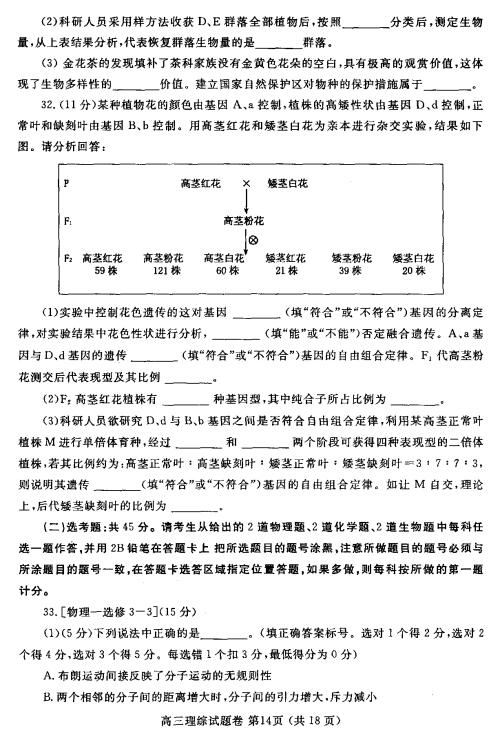 2017郑州二模理综试题及答案(14)