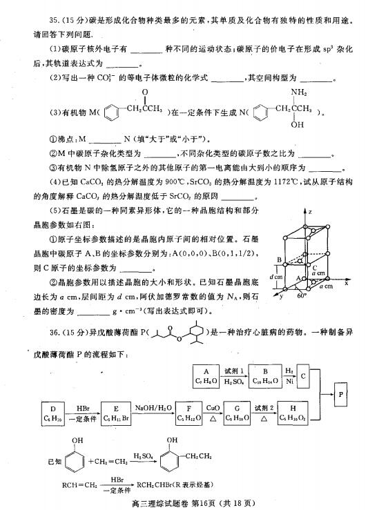 2017郑州二模理综试题及答案(16)