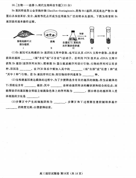 2017郑州二模理综试题及答案(18)