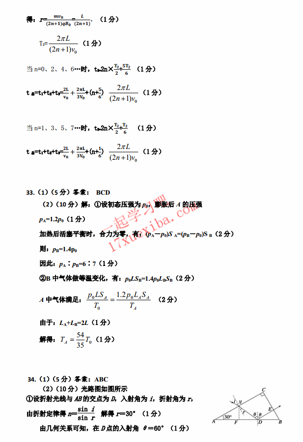 九江市2017年第二次高考模拟统一考试理综试题及答案(5)
