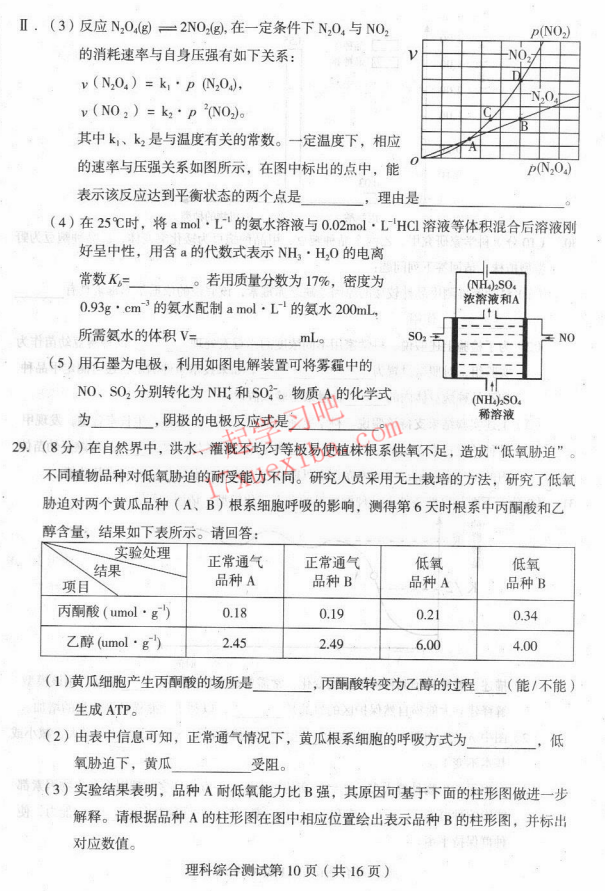 2017年东北三省四市高考第二次模拟考试理综试题及答案(10)