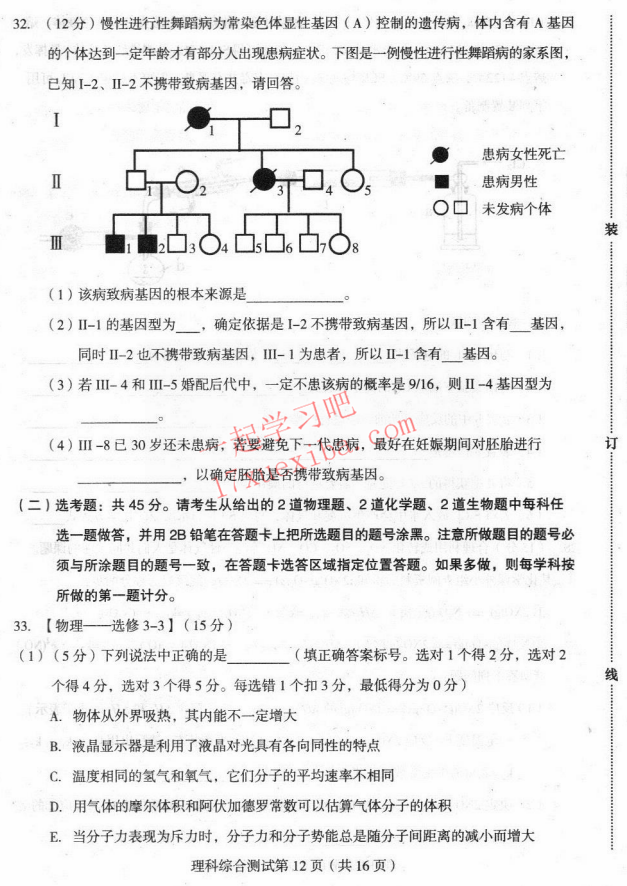 2017年东北三省四市高考第二次模拟考试理综试题及答案(12)