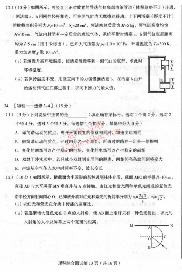 2017年东北三省四市高考第二次模拟考试理综试题及答案(13)