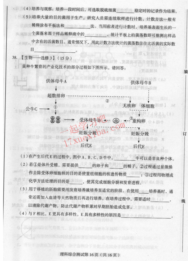 2017年东北三省四市高考第二次模拟考试理综试题及答案(16)