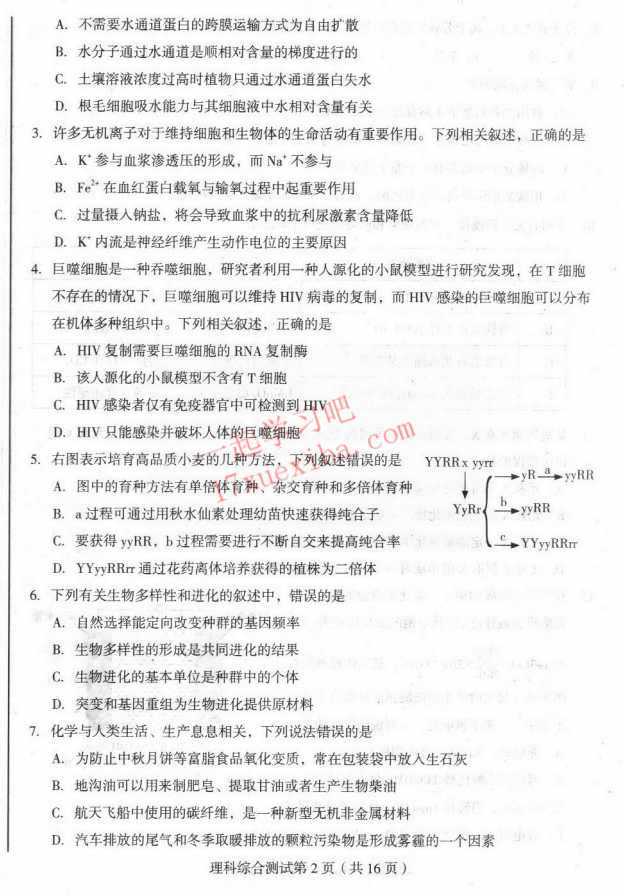 2017年东北三省四市高考第二次模拟考试理综试题及答案(2)