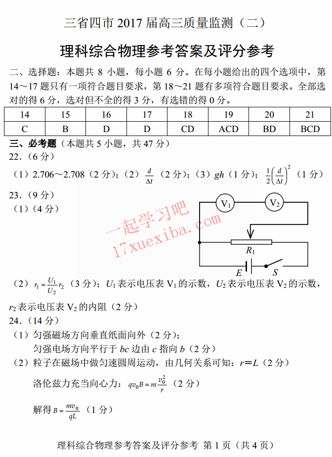 2017年东北三省四市高考第二次模拟考试理综试题及答案(20)