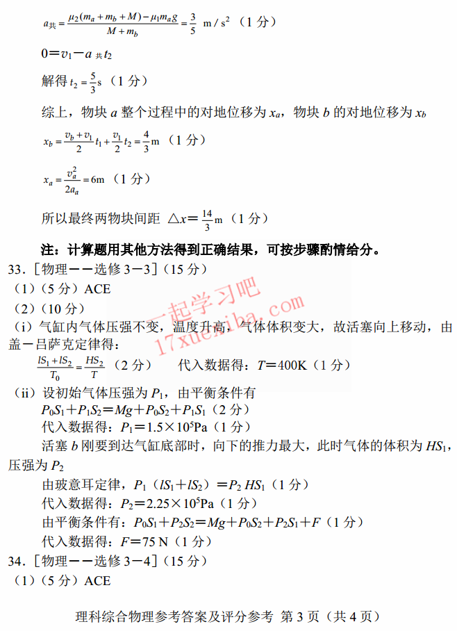2017年东北三省四市高考第二次模拟考试理综试题及答案(22)