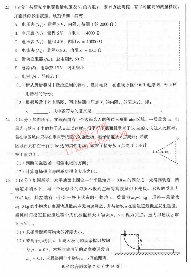 2017年东北三省四市高考第二次模拟考试理综试题及答案(7)