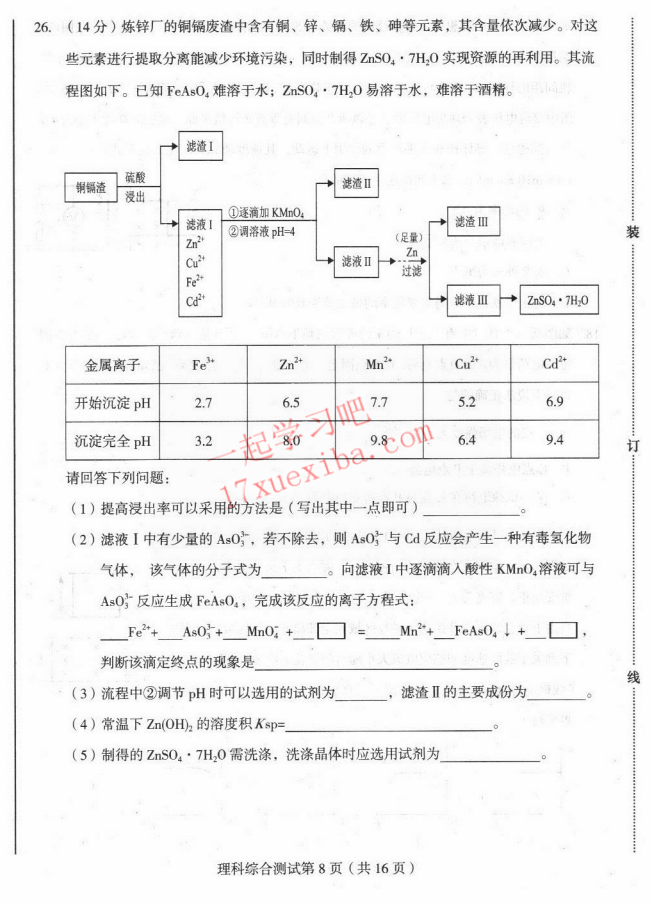 2017年东北三省四市高考第二次模拟考试理综试题及答案(8)