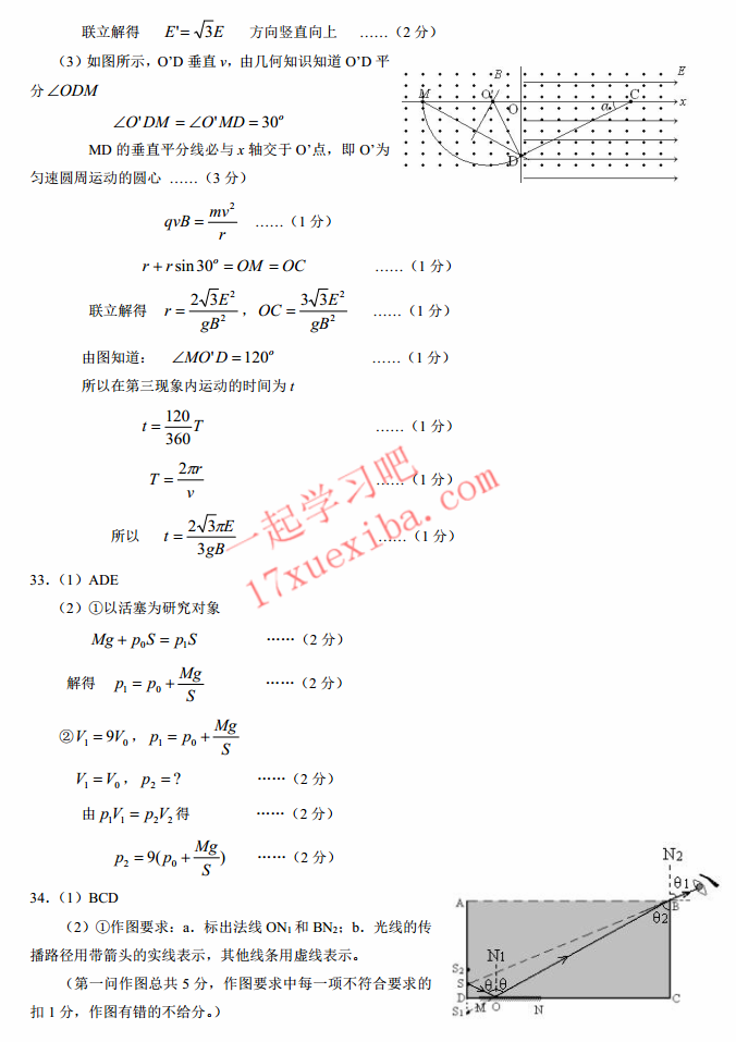 2017保定一模理综试题及答案(5)