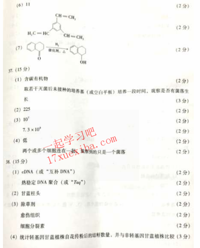 2017年4月福建省高三质量检查理综试题答案(24)