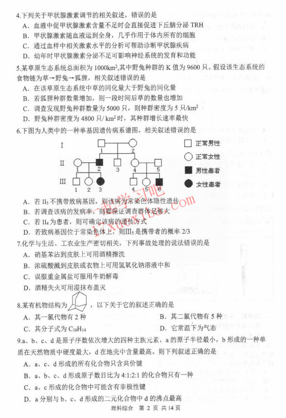 2017年哈三中二模理综试题及答案(2)