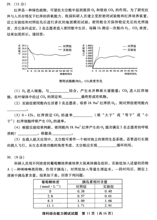 2017年福建普通高中毕业班质量检查理综试题及答案(11)