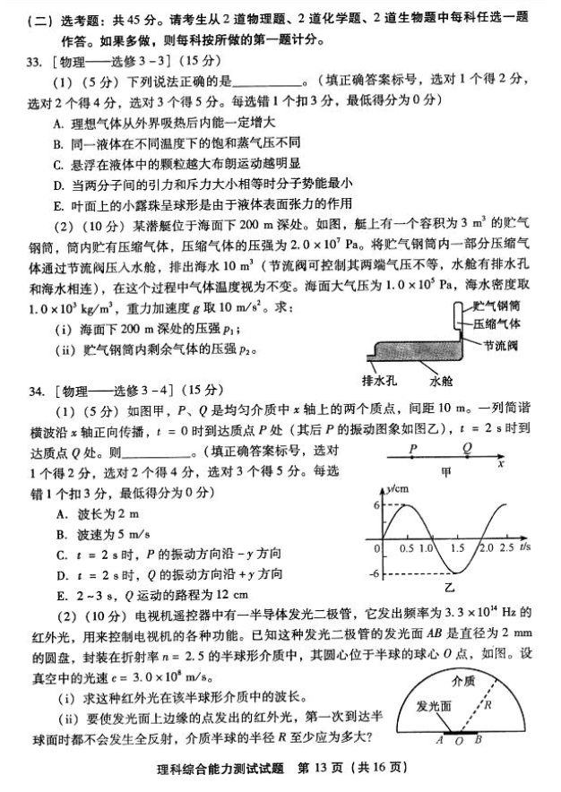 2017年福建普通高中毕业班质量检查理综试题及答案(13)