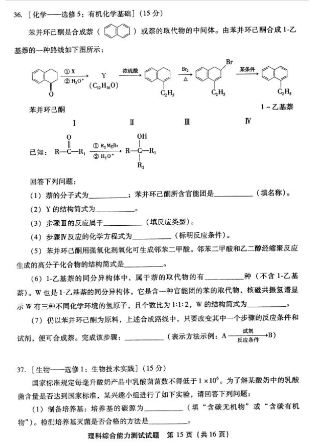 2017年福建普通高中毕业班质量检查理综试题及答案(15)