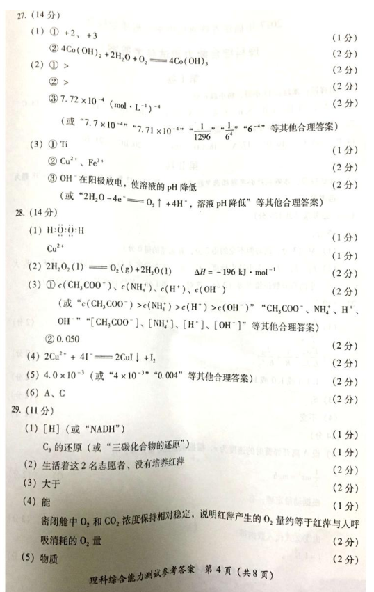 2017年福建普通高中毕业班质量检查理综试题及答案(20)