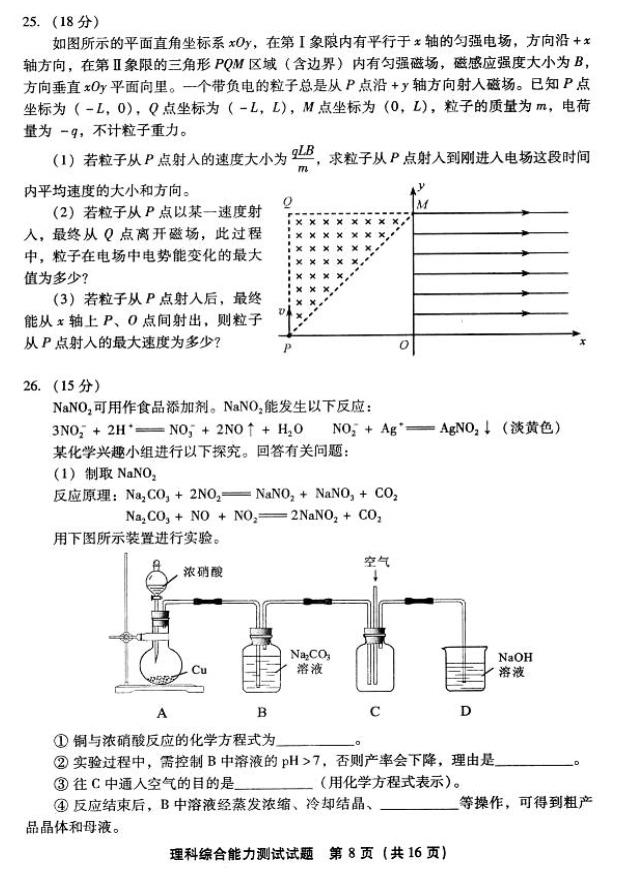 2017年福建普通高中毕业班质量检查理综试题及答案(8)