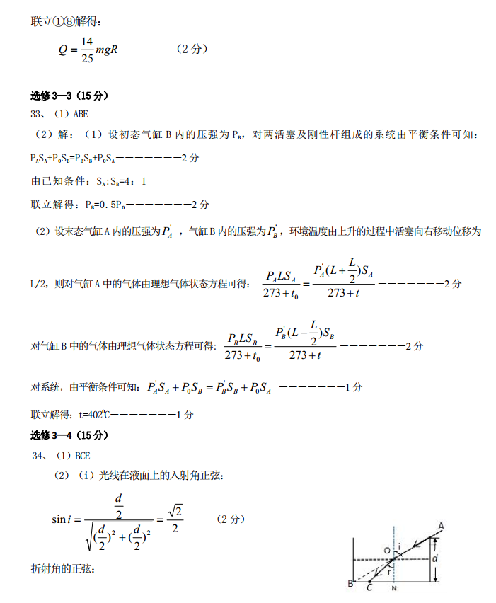 宜春市2017届高三第二学期期末统考理综试题答案(3)