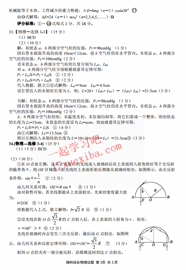 肇庆2017届毕业班第三次教学质量检测理综试题及答案(3)