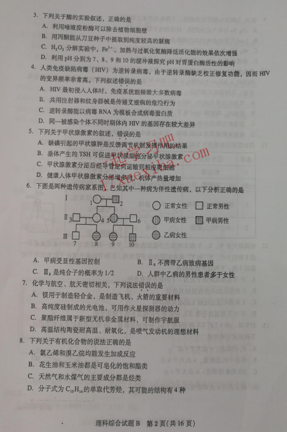 2017年广州二模理综答案(2)