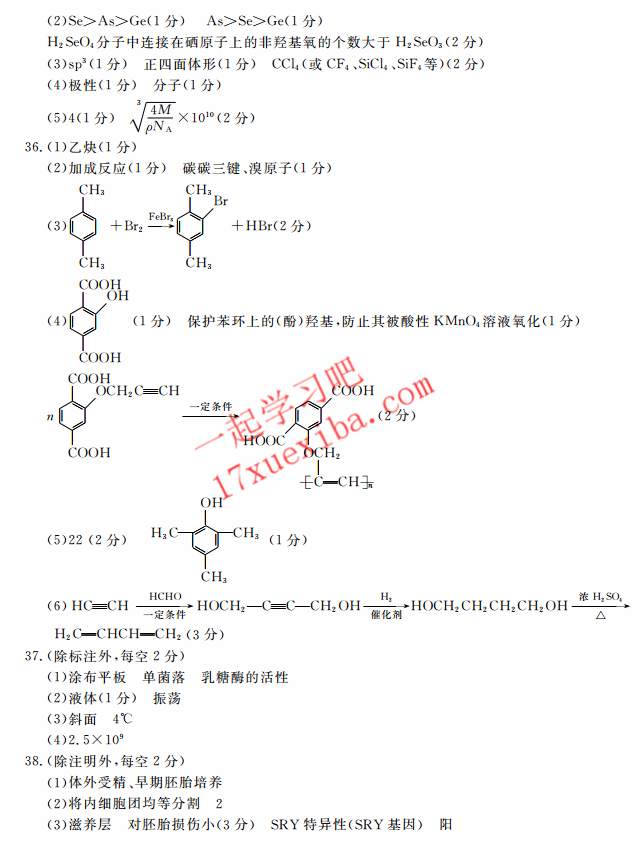 皖南八校2017届高三第三次联考理综试题答案(18)