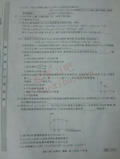 皖南八校2017届高三第三次联考理综试题答案(7)