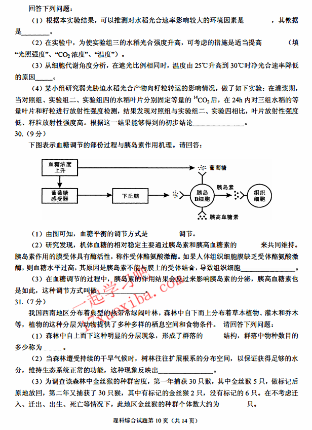 绵阳市高中2014级第三次诊断性考试理科综合试题及答案(10)