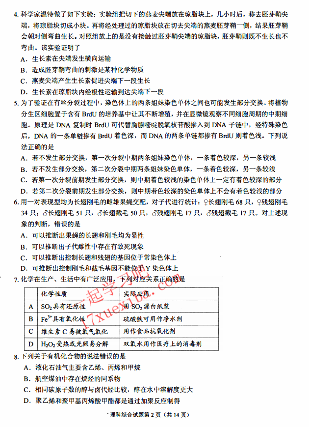 绵阳市高中2014级第三次诊断性考试理科综合试题及答案(2)