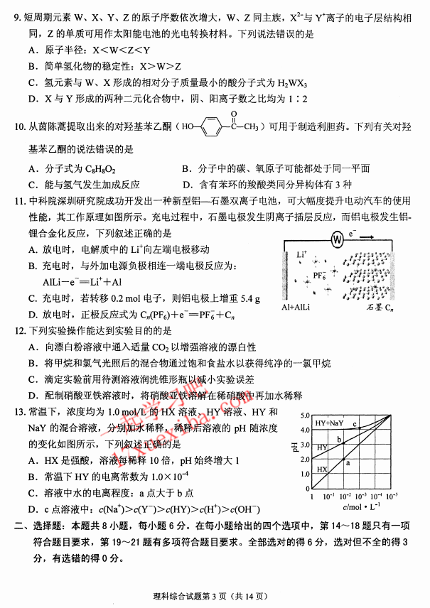绵阳市高中2014级第三次诊断性考试理科综合试题及答案(3)