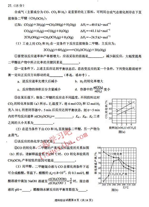 绵阳市高中2014级第三次诊断性考试理科综合试题及答案(8)