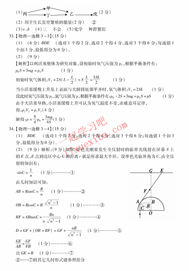 2017年咸阳高考模拟检测三理综试题答案(4)