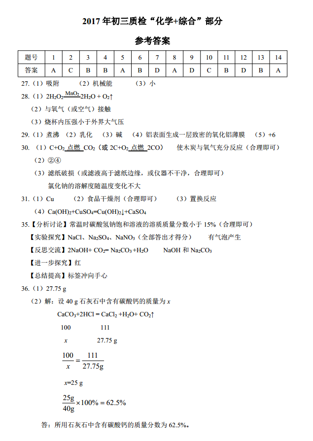 2017年石家庄初三质检一理综试题及答案(3)