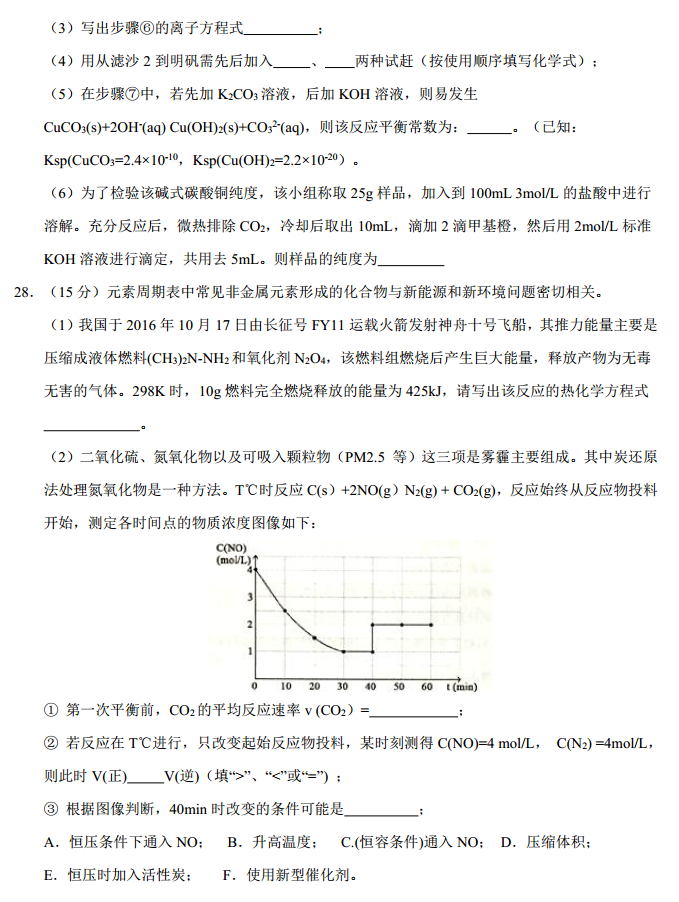 2017江西重点中学盟校高三第二次联考理综试题及答案(10)