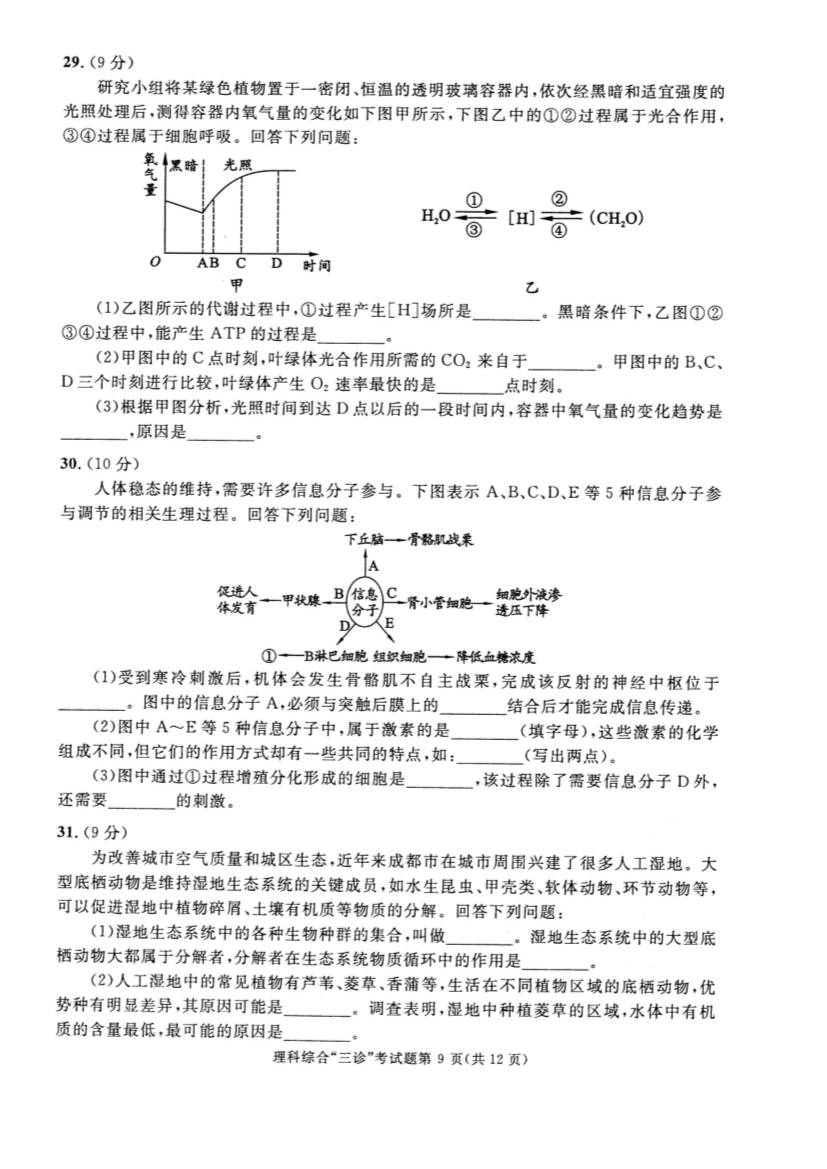 2017成都三诊理综答案(9)