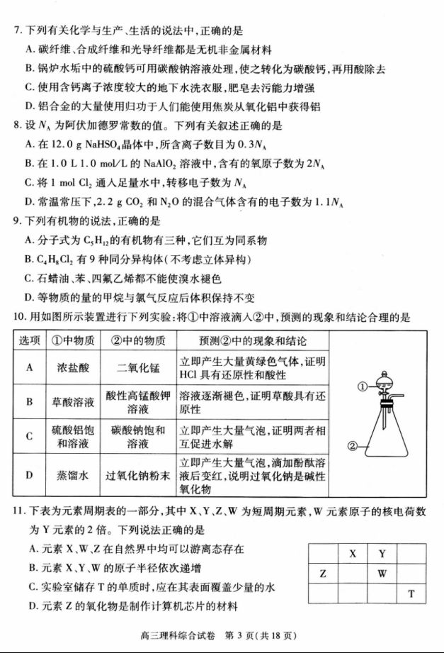 2017年武汉高三5月模拟考理综试题及答案(3)
