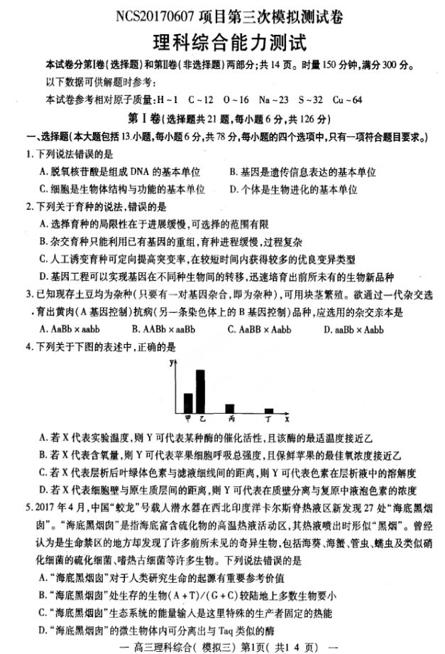 2017南昌高三三模理综试题及答案