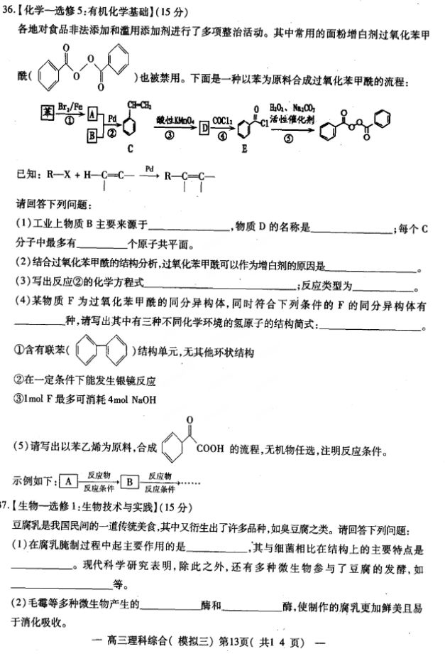2017南昌高三三模理综试题及答案(13)