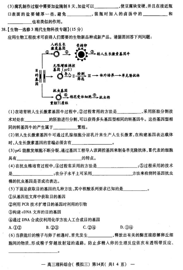 2017南昌高三三模理综试题及答案(14)