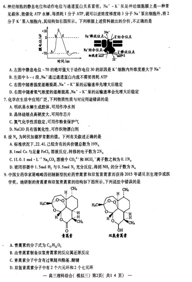 2017南昌高三三模理综试题及答案(2)