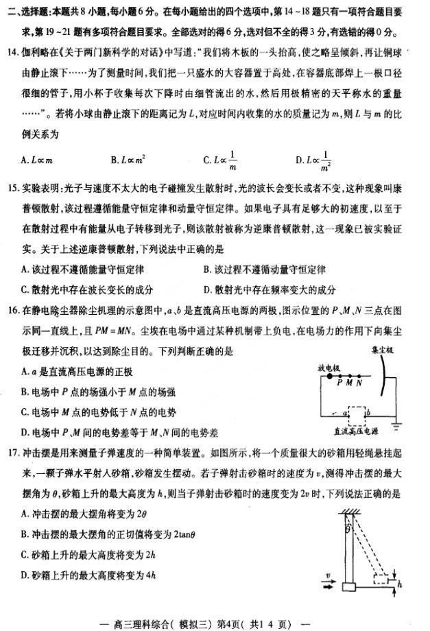 2017南昌高三三模理综试题及答案(4)