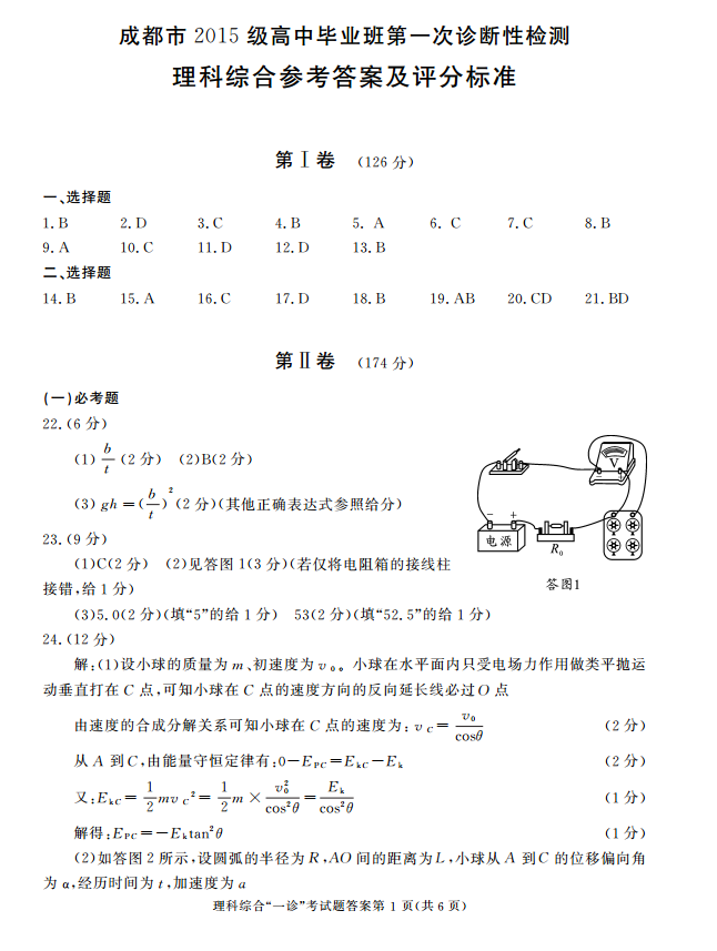 2018年成都一诊理综试题及答案(13)