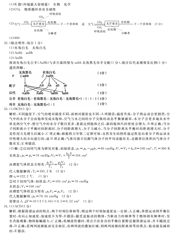 2018届皖南八校高三第二次联考理综试题答案(5)