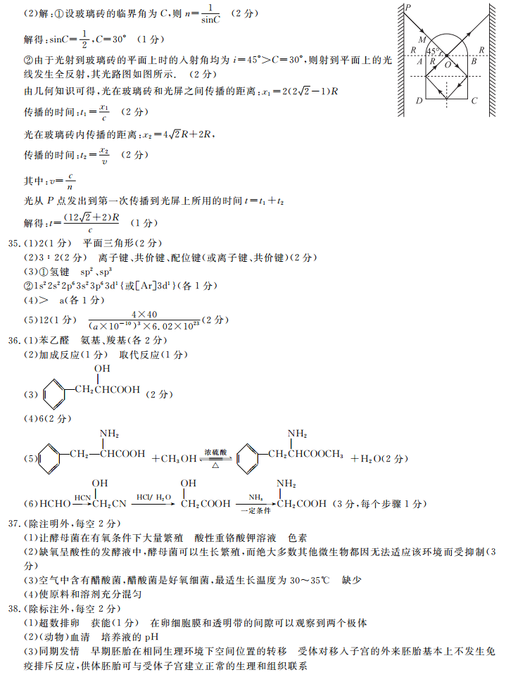 2018届皖南八校高三第二次联考理综试题答案(6)
